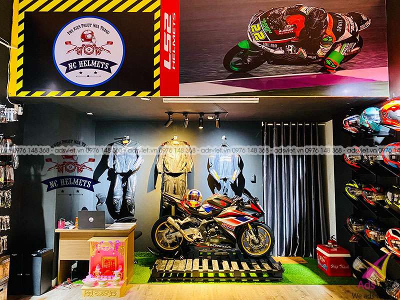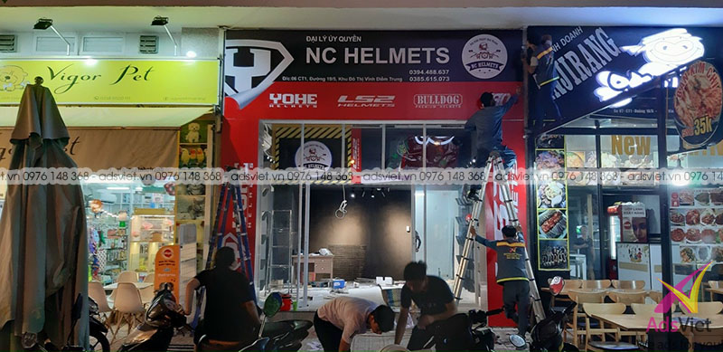 Hình ảnh công trình bảng hiệu quảng cáo shop NC Helmets - Phụ Kiện Phượt Nha Trang. Địa chỉ: Lô 06 CT1, KĐT Vĩnh Điềm Trung, Nha Trang ( Đối diện siêu thị GO - BIGC cũ ).