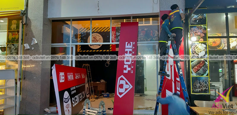 - Hai bên hông cửa hàng ốp khung sắn bắn bạt hiflex