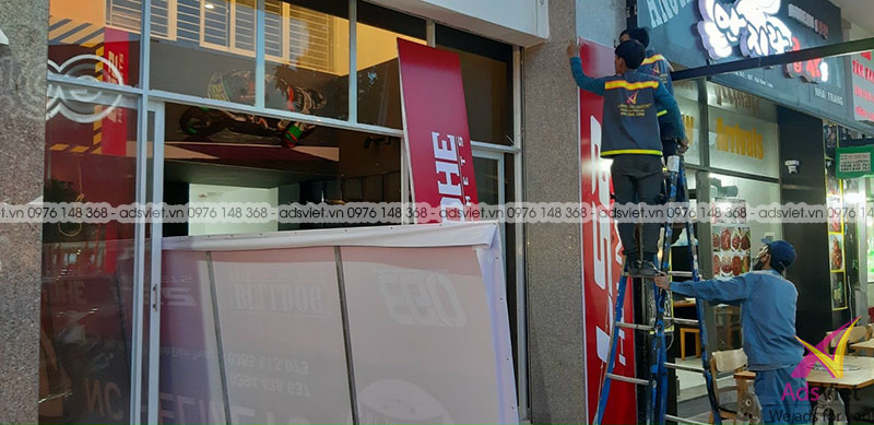 - Bảng hiệu mặt tiền khung sắt bắn bạt không đèn led