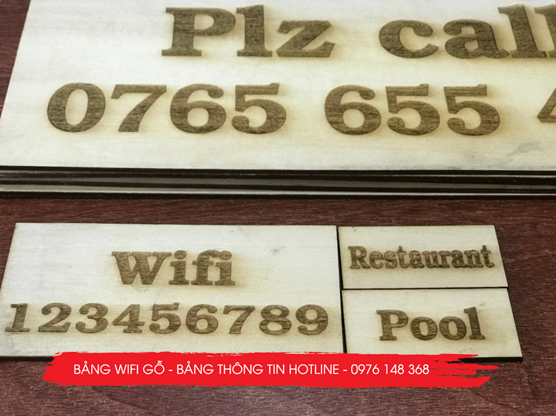 Bảng thông tin wifi gỗ khắc laser cho cafe khách sạn