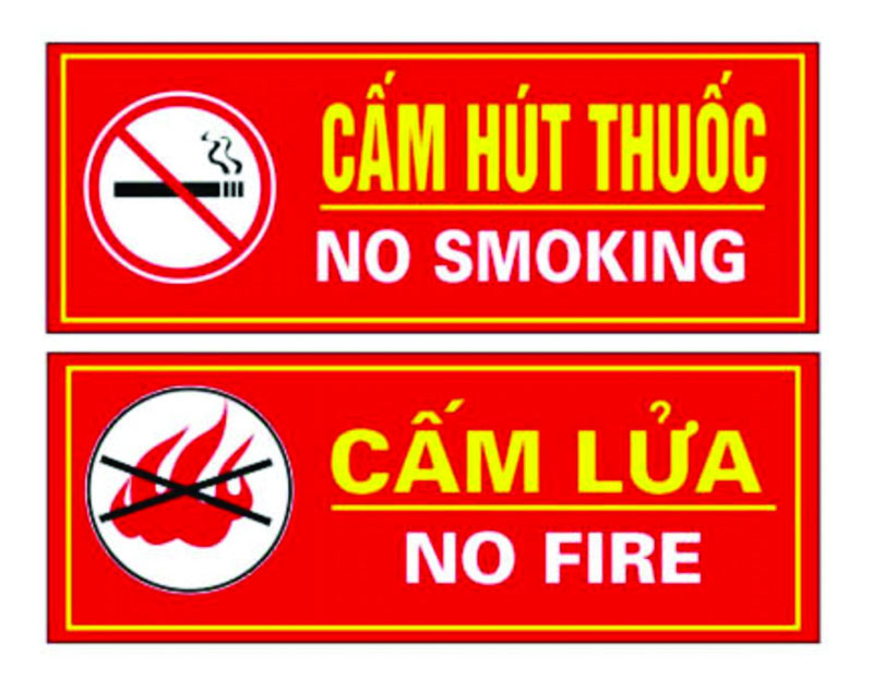 - Biển cấm lửa và cấm hút thuốc: 18×40 (cm)
