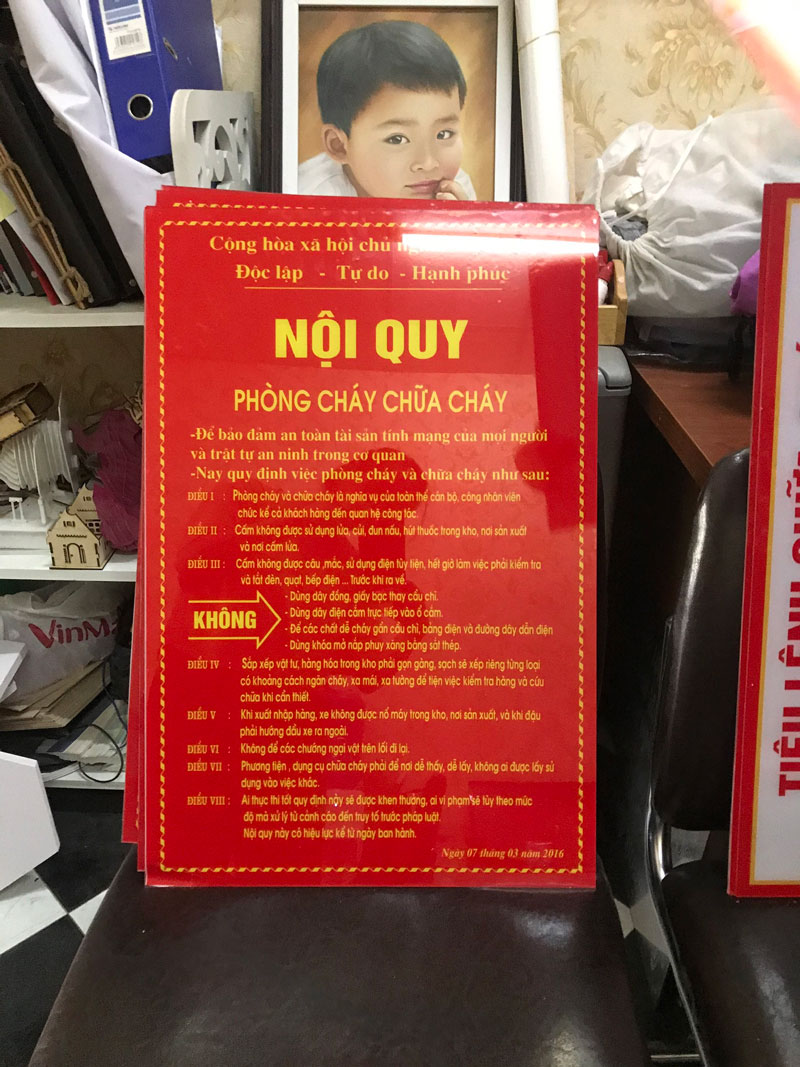Bảng nội quy tiêu lệnh mica trong dán decal ngược