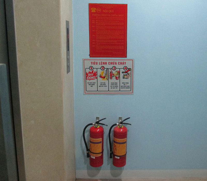 Với một số khu vực khắt khe hơn về an toàn phòng cháy chữa cháy còn có thêm bảng chỉ dẫn để thiết bị cùng bảng cấm lửa cấm hút thuốc