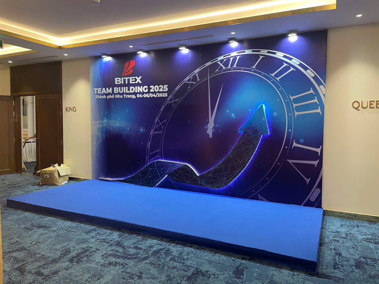 Bước 5 – Lắp đặt & bàn giao: Giai đoạn này quyết định ấn tượng đầu tiên. Tại Cam Ranh, nhiều sự kiện lớn yêu cầu bàn giao sớm để khách mời VIP tham quan. Đội thi công phải làm việc theo tiến độ nghiêm ngặt, kiểm tra từng chi tiết như hệ thống đèn, màn hình LED, bàn ghế trưng bày… để đảm bảo không có sự cố.