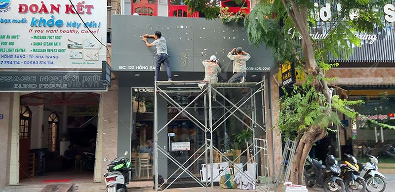 Dịch vụ vệ sinh và sửa chữa bảng hiệu quảng cáo tại Nha Trang - Bảng hiệu khi sử dựng lâu ngày sẽ bị cũ rách hoặc thay đổi nội dung mới cho phù hợp với tình hình kinh doanh thực tế sau mùa dịch covid hiện nay.