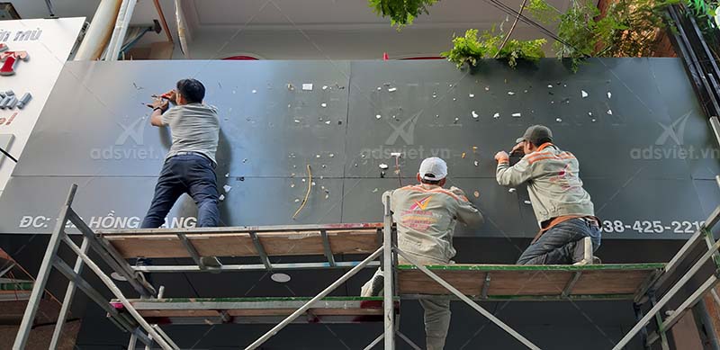 Trong quá trình thi công bảng hiệu quảng cáo ADSVIET thấy rằng đôi khi có những doanh nghiệp cần thay thế nội dung của bảng hiệu. Bởi họ có sự thay đổi về thông tin liên hệ, sản phẩm, dịch vụ... Để thay đổi được như vậy thì có hai phương án. Một là làm bảng hiệu mới hai là sửa chữa. Tuy nhiên việc làm bảng hiệu mới khá tốn kém thế nên trước khi đặt làm nhiều người sẽ quan tâm tới việc sửa chữa thay thể tận dụng từ bảng hiệu cũ.