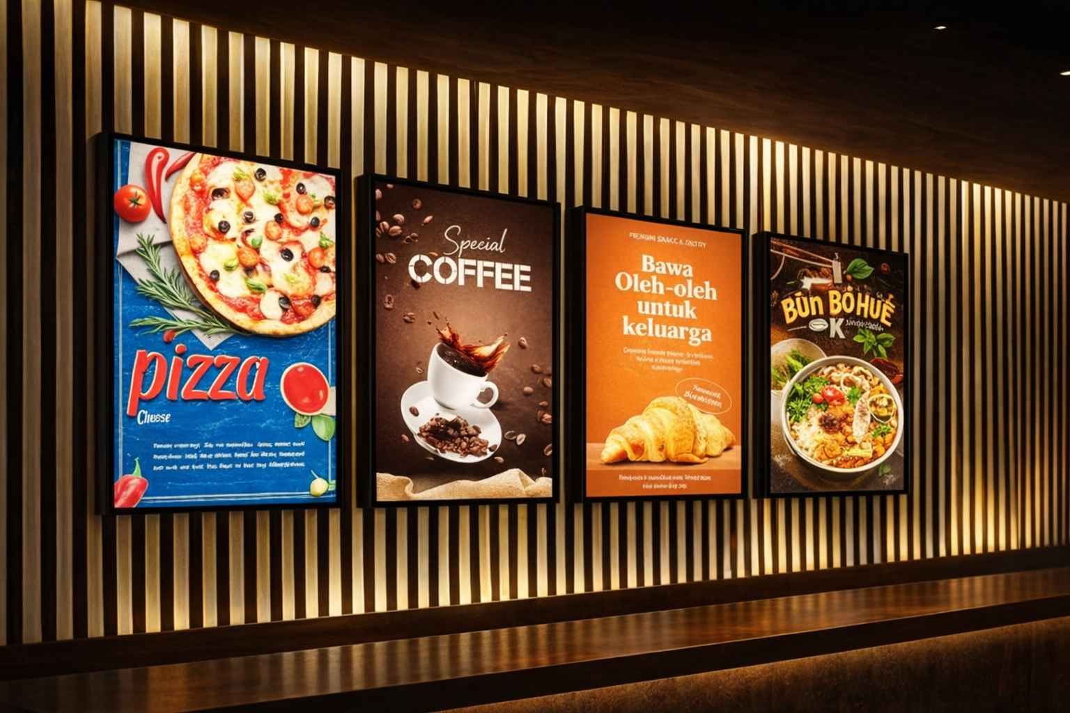 Với những quán cần menu rõ ràng, dễ nhìn nhanh, thiết kế sẽ được tối giản để khách không mất thời gian chọn món. Với những quán cần tạo điểm nhấn, bảng menu sẽ được xử lý ánh sáng và bố cục để nổi bật nhưng vẫn giữ được sự dễ đọc.