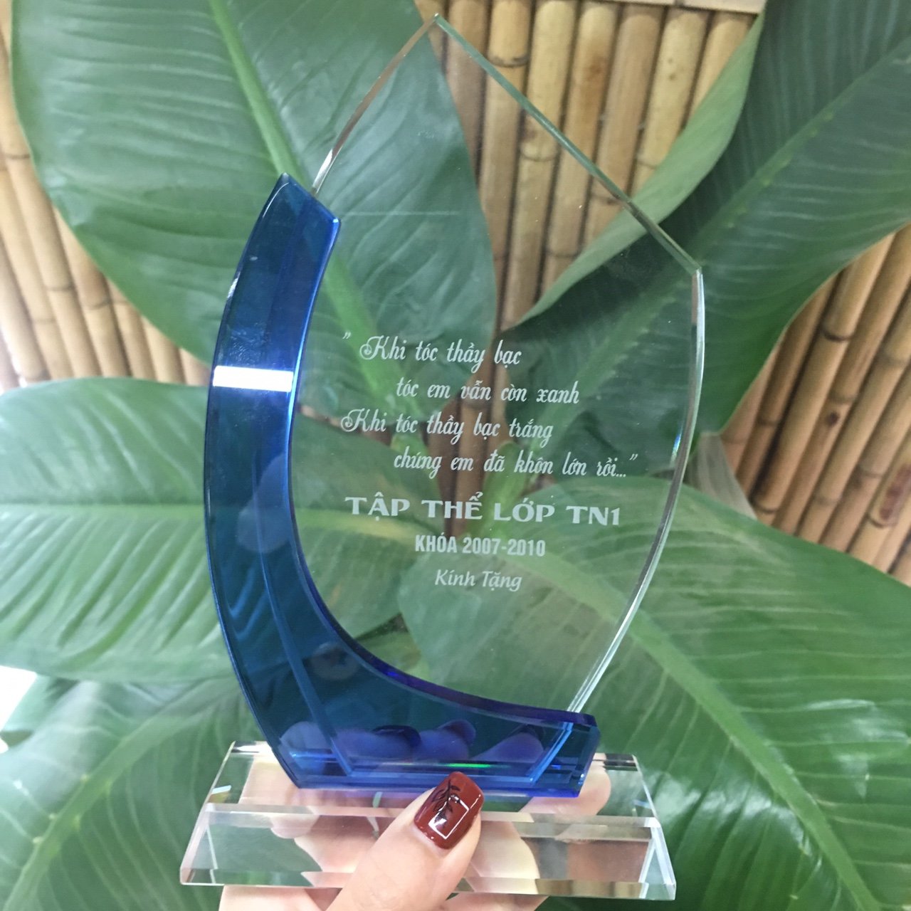 Kỷ niệm chương pha lê luôn được ghi điểm trong lòng mọi người bởi mang một vẻ đẹp tự nhiên hoàn mỹ. Mang nhiều đặc tính như màu sắc óng ánh xanh nhẹ trong suốt, bề mặt mịn màng sáng bóng, lấp lánh, sang trọng, có độ dày hơn kỷ niệm chương thủy tinh thường là 1,5cm đến 2cm, Sản phẩm thường kết hợp nhiều lớp chồng ghép cắt theo biên dạng tạo ra ấn tượng từ tặng phẩm pha lê được chọn.