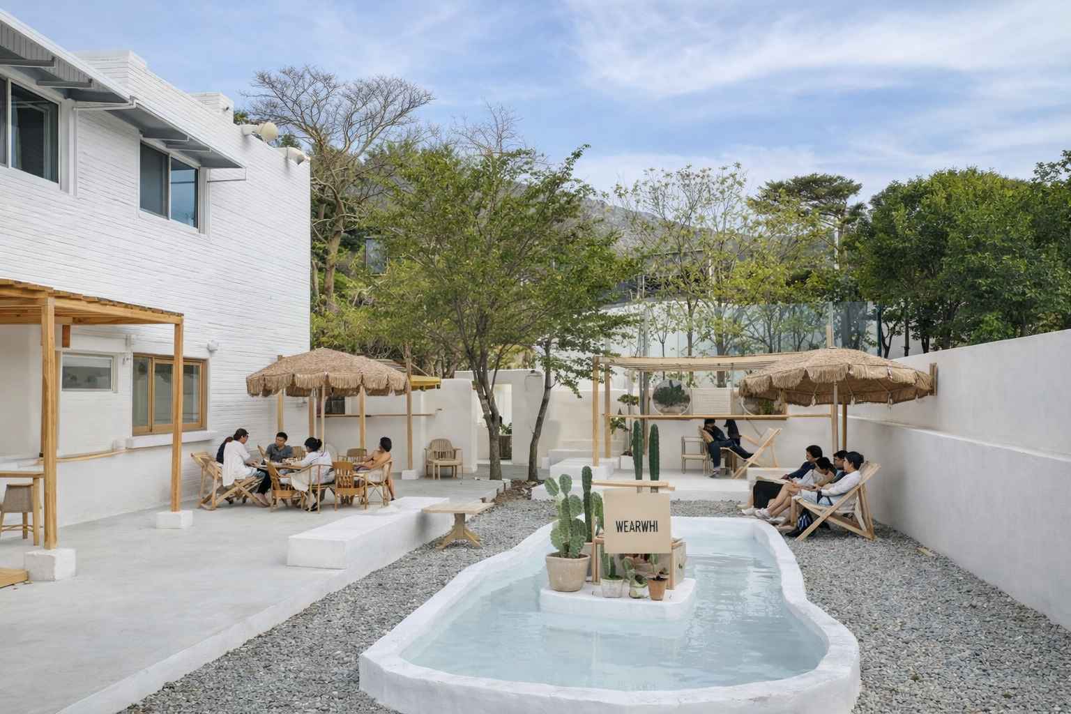 - Quán cafe phong cách nhiệt đới với màu sắc tươi sáng, phù hợp với khu vực du lịch biển