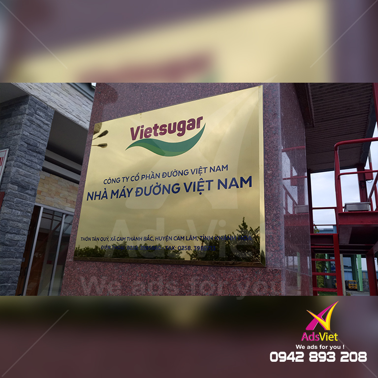 AdsViet thi công dán Decal xe, bảng hiệu, bảng công ty bằng Inox, Inox ăn mòn tại Nhà máy đường Khánh Hoà.