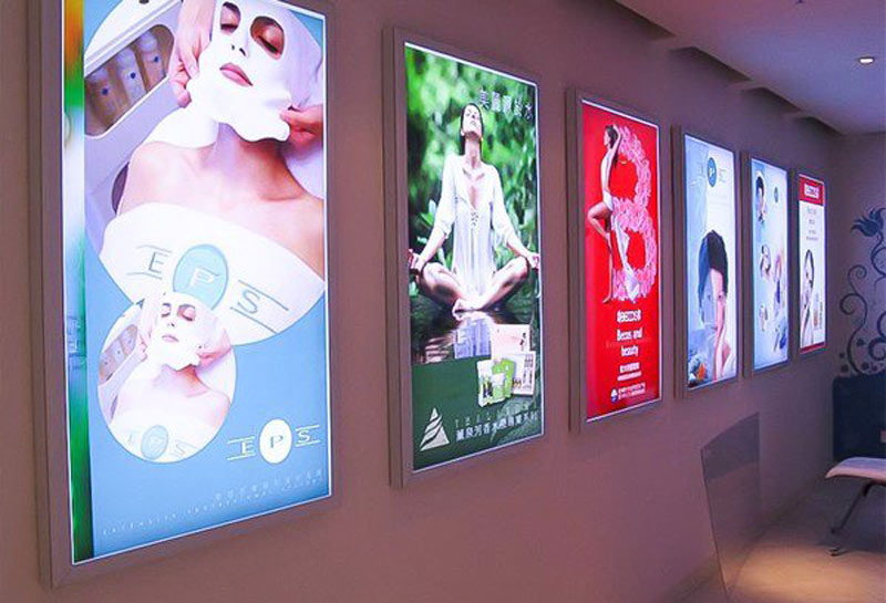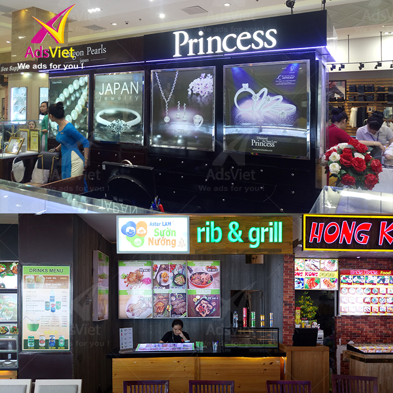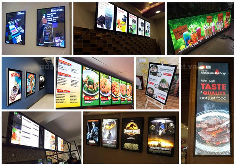 Hộp đèn siêu mỏng gắn trong các trung tâm thương mại thường được chủ đầu tư dùng để quảng cáo sản phẩm điện thoại, nước uống….