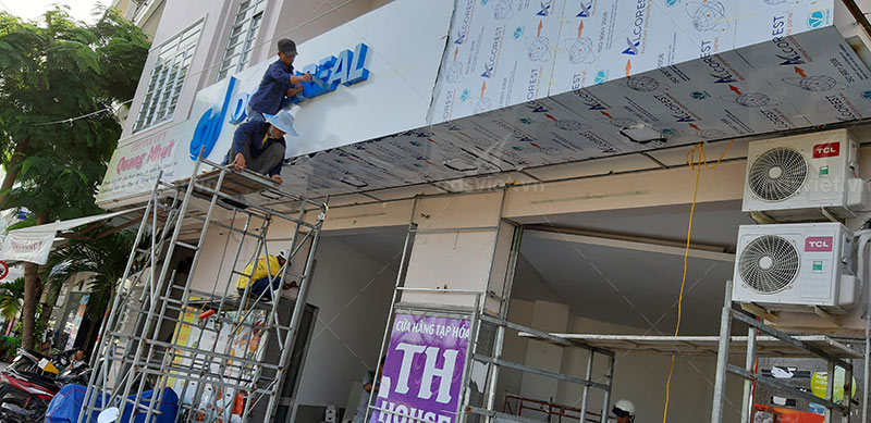 Thi công ốp mặt dựng bảng hiệu Alu chữ nổi