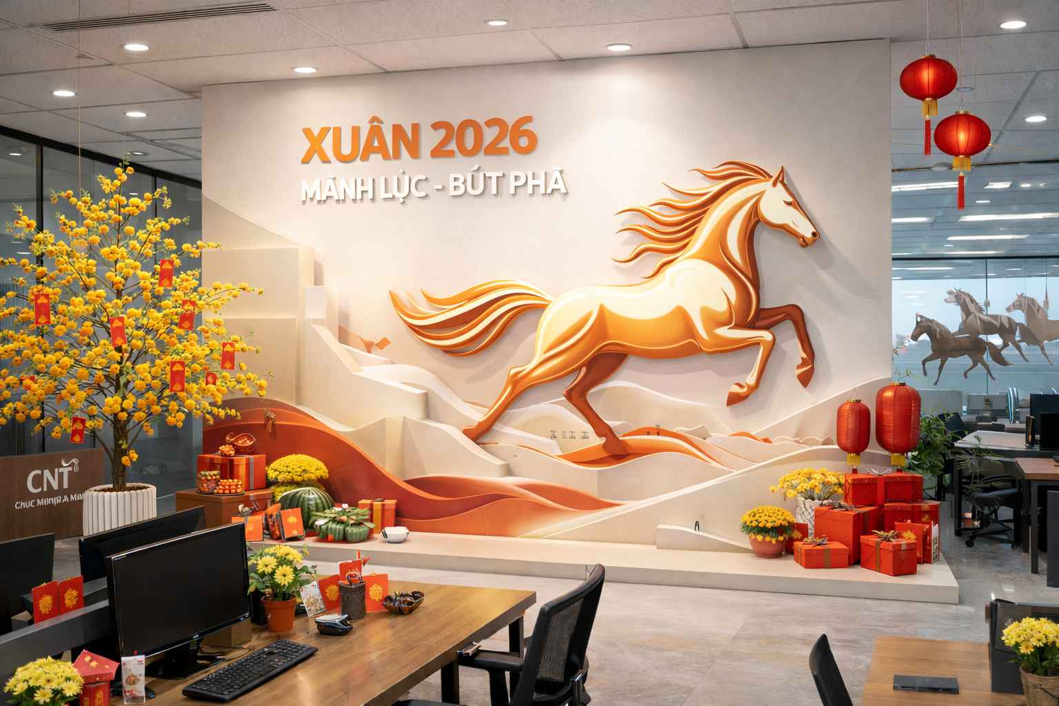 In Ấn Và Thi Công Trang Trí Tết 2026 Đồng Bộ