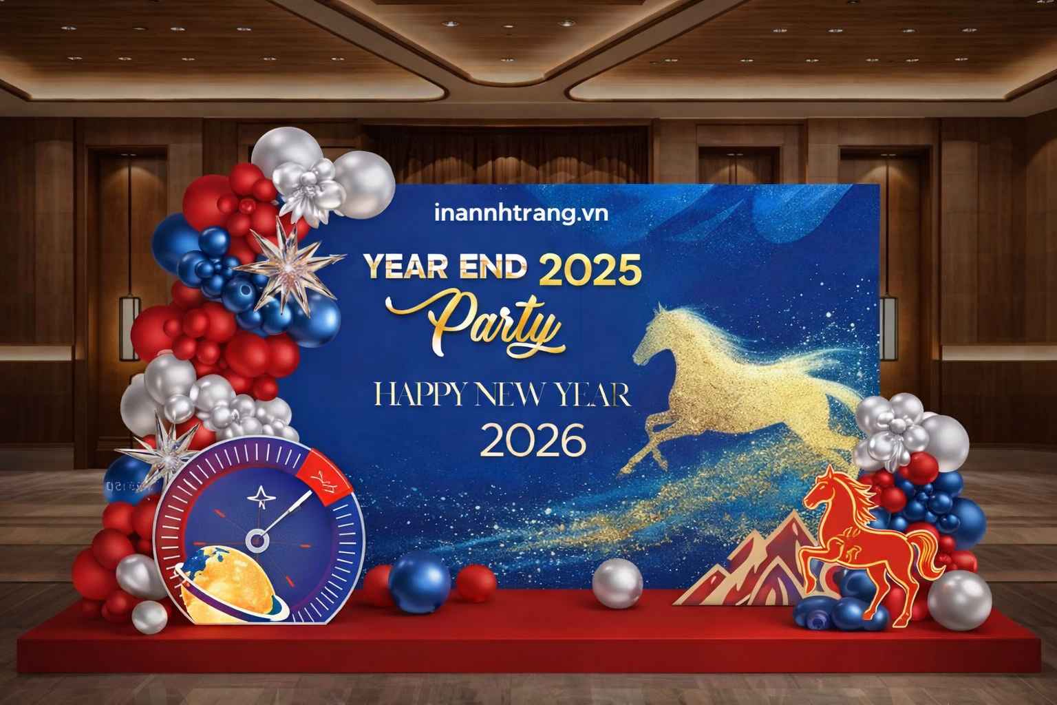 Nếu cần một điểm nhấn rõ ràng để khách tự động dừng lại, bạn có thể kết hợp backdrop Tết (nền chụp ảnh) với biểu tượng năm mới và tên thương hiệu đặt tinh tế. Cách này vừa tăng nhận diện, vừa giúp khách có ảnh đẹp mà không phải “tìm góc”. Đây cũng là lý do dịch vụ decor Tết khách sạn và thi công trang trí Tết theo concept đang được chọn nhiều hơn so với kiểu trang trí rải rác từng món.