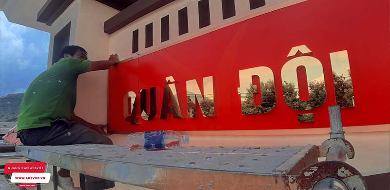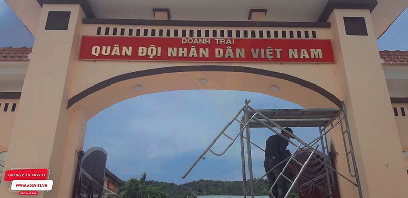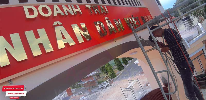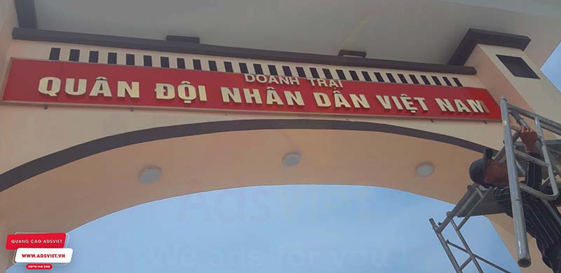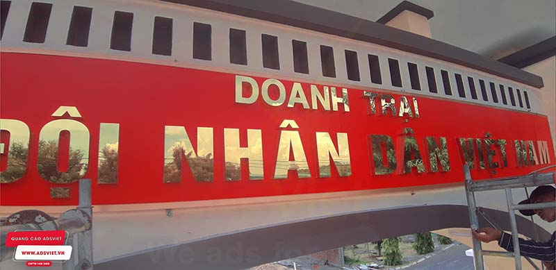 Chữ nổi inox gắn nền biển ốp alu sang trọng, bền đẹp cho Doanh Trại quân Đội Nhân Dân Việt Nam. AdsViet chuyên nhận thiết kế, thi công bảng hiệu chữ nổi với hệ thống máy móc tiên tiến, sản phẩm sắc nét.