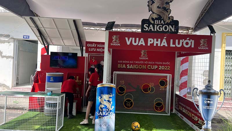 Thi công booth quảng cáo cho sự kiện Bia Sài Gòn Cup 2022 nhanh chóng, chuyên nghiệp. Không gian trưng bày thương hiệu và sản phẩm của bạn trở nên thu hút hơn với booth quảng cáo. Tạo sự kết nối và tăng nhận diện thương hiệu tới đối tác và khách hàng